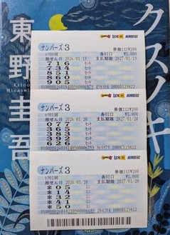 ![]() [「3けたプラス的中法で大当たり!?」] 2026年1月27日 ![]() 第6901回「932」をSB&ミニ当せん♪ 前回コラムのおすすめ数字でした。 〜〜〜〜〜〜〜〜〜〜〜〜〜〜〜〜〜〜〜〜〜〜〜〜 1月のナンバーズもあと3回。 みなさん初当たりは来ましたか? 先週のN3はご無沙汰だった3けたプラス「14」が3回も出現! コラムでおすすめしていた「14」狙いで2度当せんしました。 しかし、配当がめっちゃ低かったですね。。 今回は、3けたプラス「??」で大当たりをめざしますよ〜♪ 3けたプラス的中法とは、3けたを合計した数字(百の位+十の位+一の位)のデータから、出そうなボックス数字を予想する的中法です。 現在第6904回「443」←(3けたプラスは4+4+3=『11』)の抽せんが終わったところです。 3けた+ 最終出現回号 理論値回数 出現回数 #『05』第6806回 145 147 ↑ ×『06』第6839回 193 201 ↑ ×『07』第6873回 249 232 ↓ △『08』第6892回 311 298 ↓ △『09』第6876回 380 397 ↑△ ○『10』第6897回 435 460 ↑ ○『11』第6904回 476 455 ↓ ◎『12』第6898回 504 489 ↓ ◎『13』第6886回 518 559 ↑〇 ◎『14』第6903回 518 481 ↓ ◎『15』第6880回 504 442 ↓◎ ○『16』第6894回 476 527 ↑ ○『17』第6888回 435 478 ↑ △『18』第6882回 380 403 ↑ △『19』第6896回 311 311 ↑ ×『20』第6875回 249 241 ↓ ×『21』第6899回 193 193 ↓ #『22』第6902回 145 139 ↓ 上の表は左から3けたプラス数字、最終出現回号、理論値回数、出現回数 (↓は理論値回数より少ない、↑は理論値回数より多い) 記号の◎印は狙い目大、〇印は狙い目中、△印は狙い目小となっています。 第6904回終了現在3けたプラス『15』が、第6880回より24回出現なしなので、狙い目大の◎印をつけました。 狙い目中の〇印は『13』で、第6886回より18回出現なし。 狙い目小の△印は『09』で、第6876回より28回出現なし。 ◎印の3けたプラス『15』になるボックス数字は、 「069」「078」「159」「168」「177」 「249」「258」「267」「339」「348」 「357」「366」「447」「456」「555」 の15個です。 理論値回数504に対して442回しか出現していないので、今後出現回数が伸びてくるでしょう。 ちなみに〇印の3けたプラス『13』になるボックス数字は、 「049」「058」「067」「139」「148」 「157」「166」「229」「238」「247」 「256」「337」「346」「355」「445」 の15個です。 〜〜〜〜〜〜〜〜〜〜〜〜〜〜〜〜〜〜〜〜〜〜〜〜 今回のおすすめN3は、第6904回終了現在、第6880回より 24回出現なしの3けたプラス[15]狙いで 10点。 [087] [177] [285] [492] [681] [726] [834] [932] [951] [960] 超速ロト・ナンバーズTOPへ(C)イマジカインフォス
