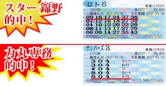 ![]() [N3風車盤十の位に翻弄される⁉] 2026年4月4日 ![]() 30日(月)、まずはロト6で僕が5等1口を自力でゲット! まずは小当たりから! これでいい流れに乗っていきたいところです。対する専務はナンバーズ4で当せん数字「9107」を「2791」狙いで撃沈! 月曜日からこの精度、さすがです‼ 31日(火)、ナンバーズ3で魅せたのは専務! 当せん数字「048」を「804」グランドスラム狙いでボックスゲット! 十の位は先週の「4」「1」のリズムが変わり、読むのが難しいなか、さすがの当せん! しかし、ケタが当たってないことが心残りの専務。さすがTHE匠です! 続くナンバーズ4では当せん数字「4404」、今年初のトリプルが出現! これを専務の本誌予想「4540」がストレートひとつ違いっ‼ これは来てますよ! 月が変わって4月1日(水)、まず魅せたのは専務! ナンバーズ3当せん数字「063」を「307」グランドスラム狙い! 風車盤一の位「7」の隣は「6」‼ しかも十の位は月曜日から「6」→「4」→「6」と先々週からの「4」「1」のリズムに似ている! 思わず専務も「ウソでしょ!」と驚き! こういう動きをするから風車盤はおもしろい! 2日(木)は、ナンバーズ3当せん数字「095」を「051」グランドスラムで狙っていた専務! 風車盤十の位「9」に思わず「やられたかも!」と専務。先ほどの十の位は月曜日から「6」→「4」→「6」ときて「9」(4)、そう同じ数字の繰り返しなんです。こういう流れには乗ったほうがいいかもですね! 迎えた3日(金)は、専務が魅せてくれます! ナンバーズ3当せん数字「479」を、まずは本誌予想「244」が裏! そして本線「270」「770」グランドスラム狙いで外れはしたものの、翻弄された十の位は見事に当てました! これは来週に期待です☆ 超速ロト・ナンバーズTOPへ(C)イマジカインフォス