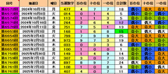 ![]() [「大阪抽せんデータ」] 2025年10月8日 ![]() 〜〜〜〜〜〜〜〜〜〜〜〜〜〜〜〜〜〜〜〜〜〜〜〜〜 ただいま大阪・難波の「大阪宝くじドリーム館」で抽せんが行われています。 コラムは水曜日更新なので残りは本日の第6830回を含めて、金曜日第6832回までの3回です。 今回はこの3回分を曜日別で予想したいと思います。 ■10月8日(水)第6830回の予想 過去の大阪抽せん水曜日の当せん数字を10回分さかのぼって書き出しました。 データを参考に、あなた自身で予想数字を出してみて下さい。 第5994回 689 偶偶奇 大大大 第6034回 892 偶奇偶 大大小 第6152回 460 偶偶偶 小大小 第6252回 339 奇奇奇 小小大 3W 第6337回 114 奇奇偶 小小小 1W 第6399回 791 奇奇奇 大大小 第6519回 643 偶偶奇 大小小 第6574回 113 奇奇奇 小小小 1W 第6655回 973 奇奇奇 大大小 第6760回 897 偶奇奇 大大大 ●私なりの見解 ダブル(W)が3回。確率を考えるとシングルとダブルがどちらが出てもいい頃だ。 百の位は偶数の小数字「0」「2」「4」、十の位と一の位は偶数の大数字「6」「8」で狙ってみよう。 おすすめ数字 「068」「088」「268」「466」「486」 ■10月9日(木)第6831回の予想 同じく木曜日の当せん数字を10回分さかのぼって書き出しました。 第5995回 949 奇偶奇 大小大 9W 第6035回 020 偶偶偶 小小小 0W 第6153回 909 奇偶奇 大小大 9W 第6253回 112 奇奇偶 小小小 1W 第6338回 866 偶偶偶 大大大 6W 第6400回 948 奇偶偶 大小大 第6520回 503 奇偶奇 大小小 第6575回 264 偶偶偶 小大小 第6656回 033 偶奇奇 小小小 3W 第6761回 108 奇偶偶 小小大 ●私なりの見解 ダブル(W)が6回と異常に多く、次はシングルかな? 百の位は偶数の大数字「6」「8」、十の位は奇数の大数字「5」「7」「9」、一の位は奇数の小数字「1」「3」が期待大。 おすすめ予想数字 「651」「673」「853」「891」「893」 ■10月10日(金)第6832回の予想 同じく金曜日の当せん数字を10回分さかのぼって書き出しました。 第5996回 359 奇奇奇 小大大 第6036回 566 奇偶偶 大大大 6W 第6154回 432 偶奇偶 小小小 第6254回 642 偶偶偶 大小小 第6339回 090 偶奇偶 小大小 0W 第6401回 706 奇偶偶 大小大 第6521回 498 偶奇偶 小大大 第6576回 751 奇奇奇 大大小 第6657回 100 奇偶偶 小小小 0W 第6762回 407 偶偶奇 小小大 ●私なりの見解 シングルかダブルか?迷うところだが、シングルが出そうかな? 百の位は奇数の大数字「5」「7」「9」、十の位は奇数の大数字「5」「7」「9」、一の位は奇数の小数字「1」「3」が期待大。 おすすめ予想数字 「571」「573」「791」「793」「951」 ※あなたなら流れをどう読みますか?少しでも参考になれば幸いです。 〜〜〜〜〜〜〜〜〜〜〜〜〜〜〜〜〜〜〜〜〜〜〜〜〜 今回のおすすめN3は、第6827回終了現在、第6724回より103回出現なしの ボックスペア未出現[15]狙いで10点。 [051] [151] [251] [351] [451] [551] [651] [751] [851] [951] 超速ロト・ナンバーズTOPへ(C)イマジカインフォス