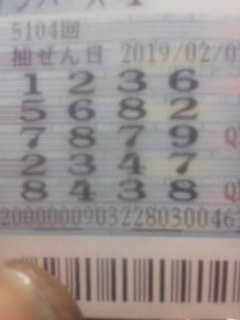 [5]T.T(20810677)/福岡県/41歳/男性 ノンちゃんさん(^_^)。 ナンバーズ4のボックス当選おめでとうございます🎵 2019-02-02 11:57:48