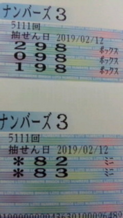 ◆ミニ当たりました ![]() なお(20189771)/大阪府/64歳/女性 ![]() 当たりました ![]() 嬉しいです ![]() 298 はちょっと惜しかった ![]() 残念! 2019-02-12 20:04:10