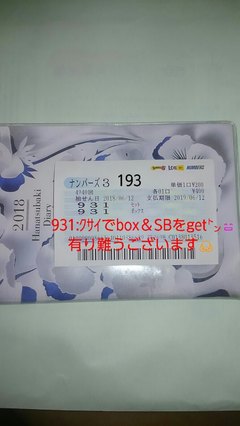一昨日11日(月)のN3が413で自分誕生日数字のストニア。先週A回もひろぴんさん♪実母誕生日数字のboxが来て逃した悔しさが蘇り、今回も引っ張りが有るかも?と思い、137と先月皐月最終日に購入していた931のboxとsetを購入しました。その結果、後者で再びW当選する事が出来ました(^^)