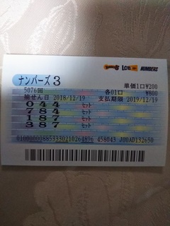 [3]T.T(20810677)/福岡県/41歳/男性 トンキーさん(^_^)。 遅れましたが、ナンバーズ3のSB当選おめでとうございます😉。 2018-12-20 19:58:26