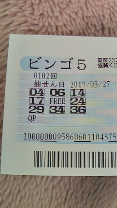 ◆ビンゴ5 ![]() えむりん(20231548)/群馬県/44歳/女性 ![]() 2019-03-29 09:45:29