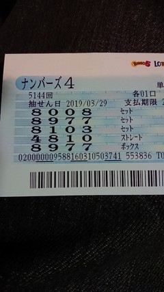 先週(金曜日)に引き続きナン4当選おめでとうございます(*^o^*)