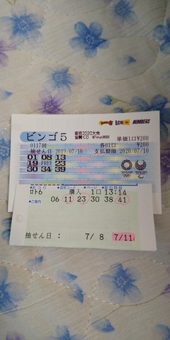 ◆ビンゴ5とロト6ダブル当選♪ えむりん(20231548)/群馬県/44歳/女性 ![]() 2019-07-14 09:50:28