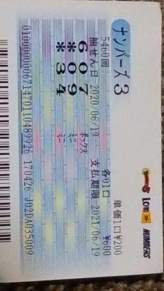 福井に用事があってその時に宝くじで買ったら当たりました。最初は34は買う候補になかったのですが好きな数字だからと強行したらアタリでした。